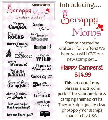 Here is a project I made with the brand new Happy Camper's Set! My hubby is taking my son to the cabin in the next few weeks so I wanted to send them with a traditional SMORE'S KIT.. no better time to use our brand new stamps to embellish the box!! Of course I could not make it to frilly!